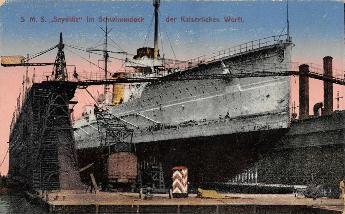 S.M.S. "Seydlitz" im Schwimmdock der Kaiserlichen Werft AK 1917