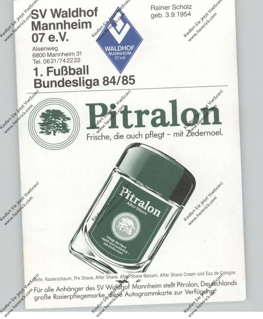 SPORT - FUSSBALL - WALDHOF MANNHEIM, RAINER SCHOLZ, Autogramm
