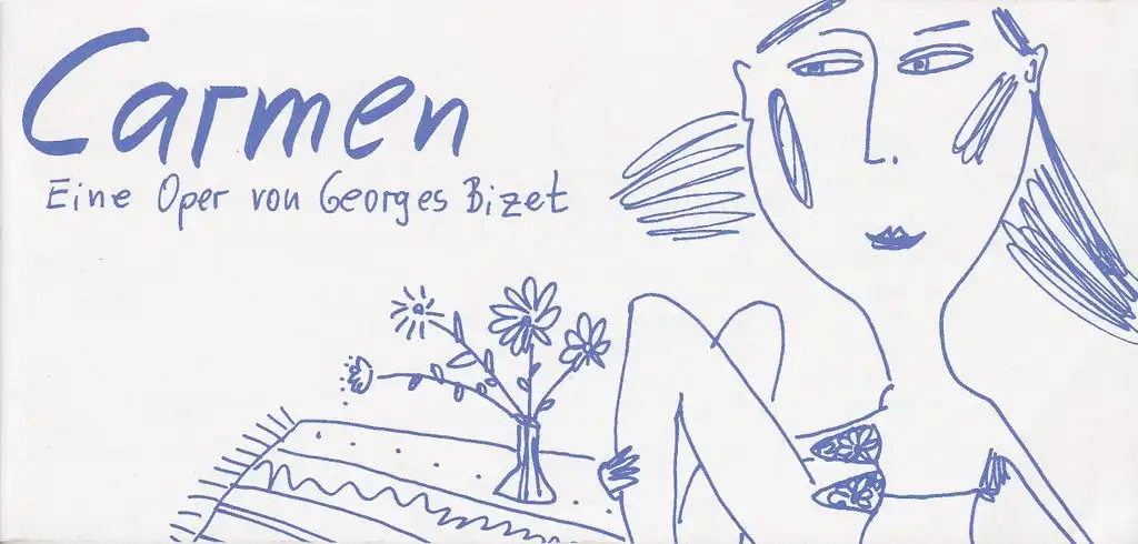 Musikalische Leitung: Friedrich Suckel. Regie: Nelly Danker. Ausstattung und Produktion: Franziska E. Waldmann. Mitwirkende: Carmen - Kinga Dobay, Don José - Yun-Hwan Cho, Micaela - Leila Trenkmann, Escamillo - Carlos Aguirre, Mercedes - Anna Prohaska, Frasquita - Katharina Göres, Zuniga - Hyeong-Joon Ha, Dancairo - Roman Grübner, Remendado - Florian Hoffmann, Moralès - Nikolay Borchev - Theaterprogramm, Opernprogramm, Ballettprogramm, Musicalprogramm, Konzertprogramm, Theatermemorabilia, Programmhefte Sammlung, deutsche Theatergeschichte.