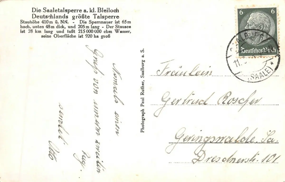 Saaletalsperre a. kl. Bleiloch Deutschland größte Talsperre Postkarte AK