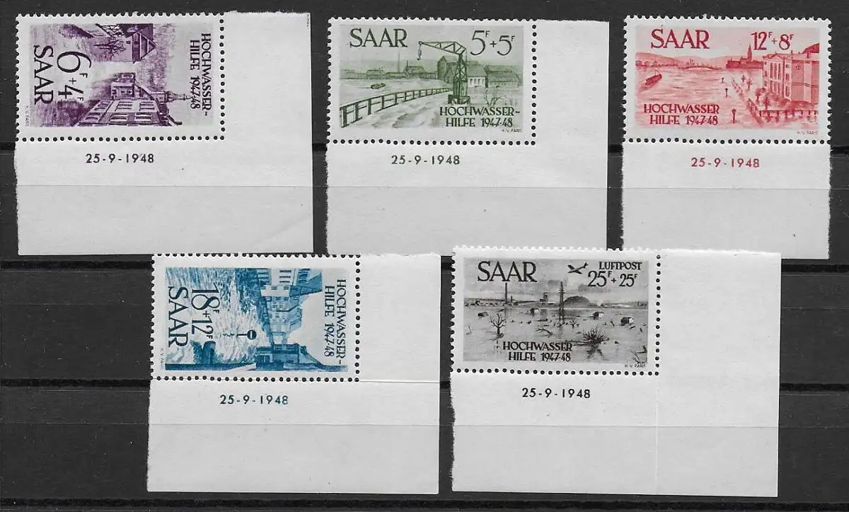 Saar 1948: MiNr. 255-259, Eckrand, postfrisch, **, teils gefaltet