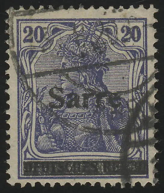 Saargebiet 8III Germania Sarre-Type III auf 20 Pf, gestempelt