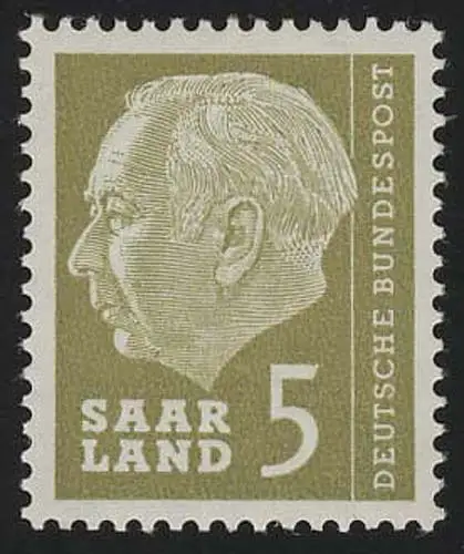 Saarland 384 Heuss 5 (Fr) 1957, **
