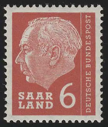 Saarland 385 Heuss 6 (Fr) 1957, **