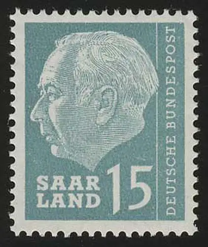 Saarland 388 Heuss 15 (Fr) 1957, **