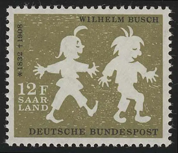 Saarland 429 Wilhelm Busch & Max und Moritz 12 Fr 1958, **