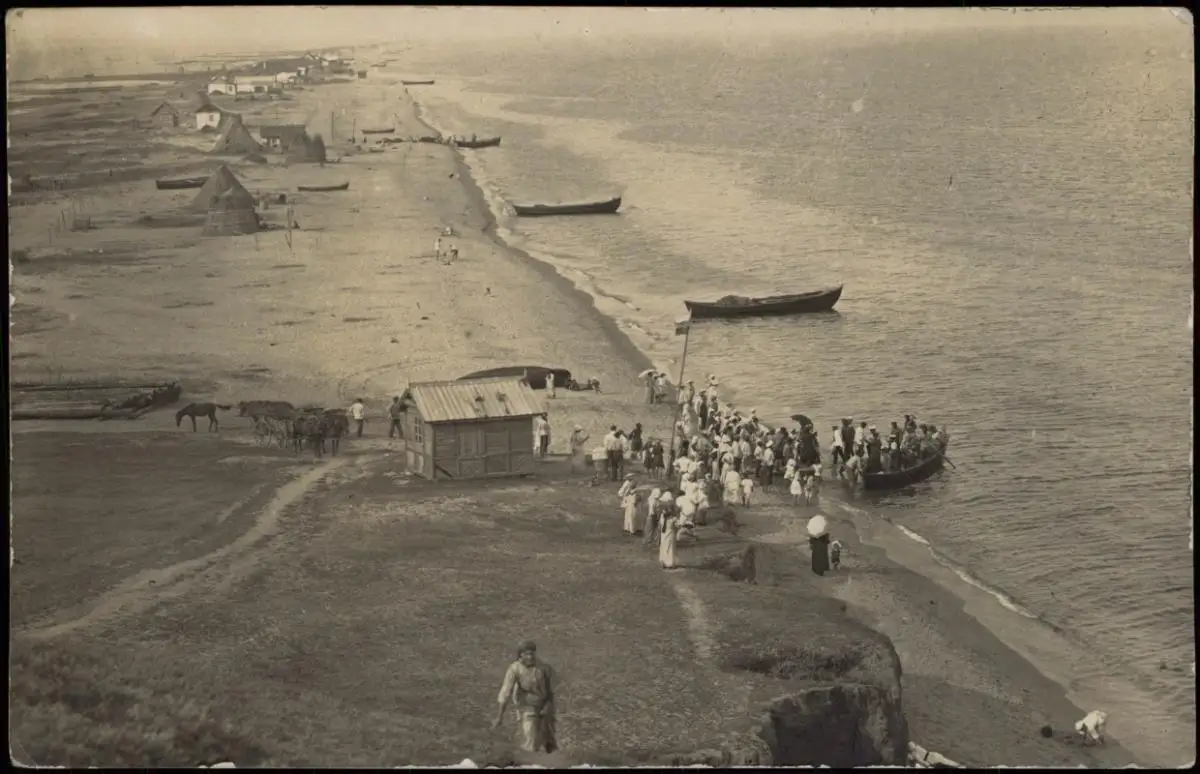 Sachalin Сахалин Rußland Россия Landungsboote Strand Hütten 1919 Privatfoto