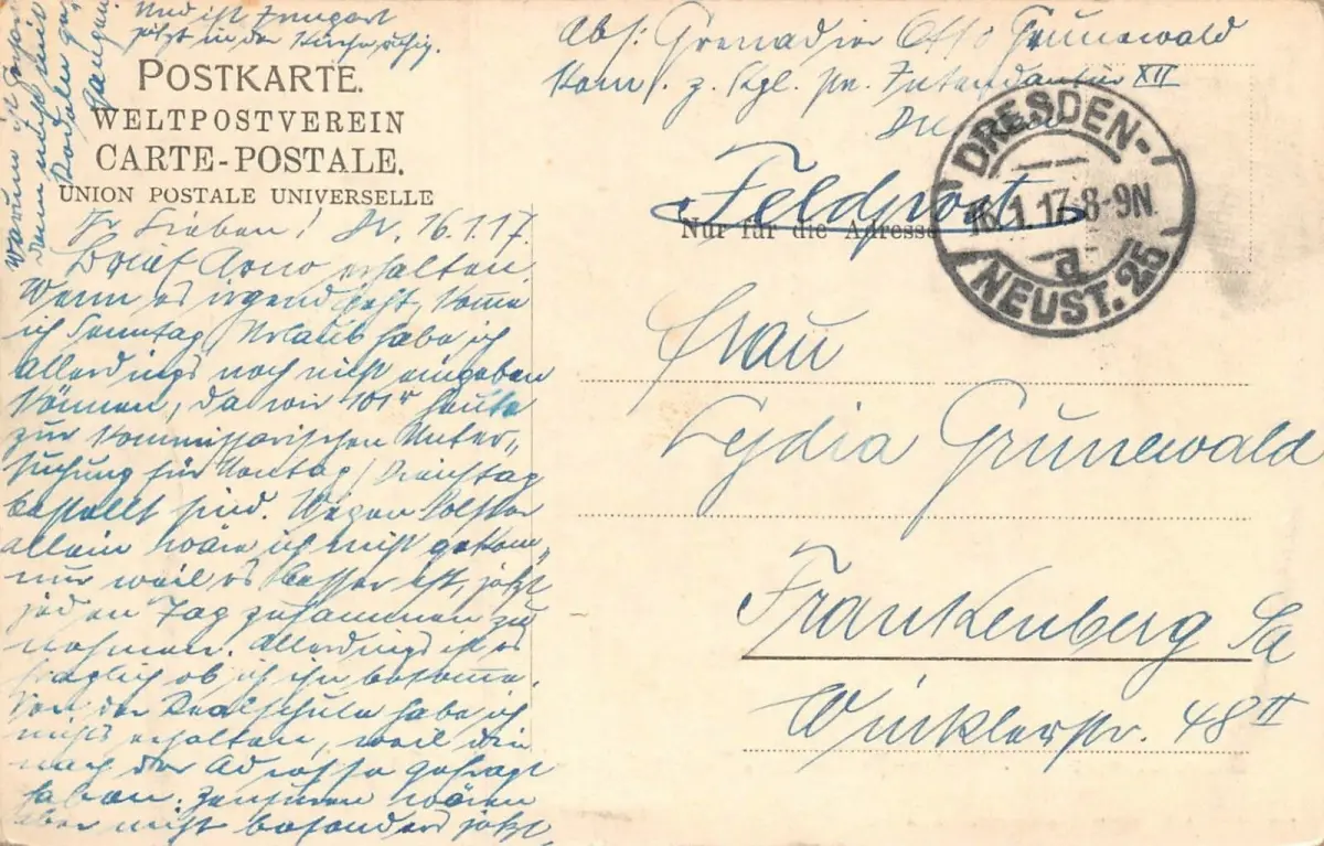 Rückseite: gelaufen 1917 von Dresden-Neust.