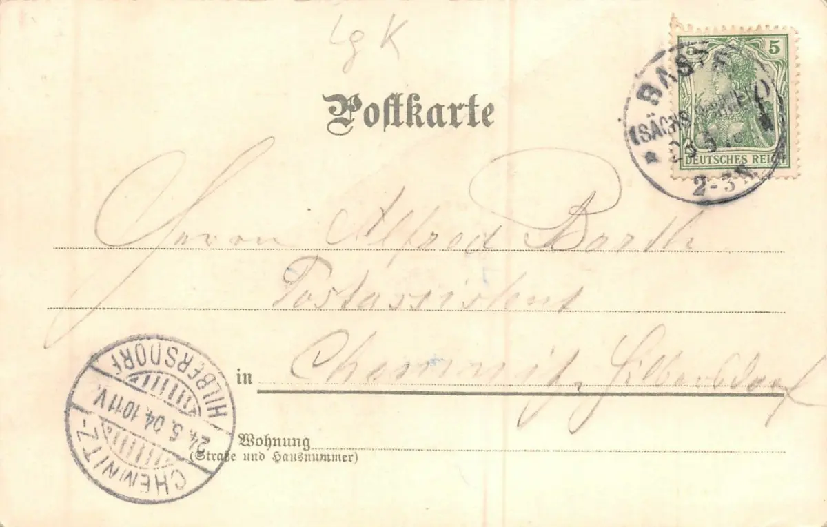 Rückseite: gelaufen 1904 von Bastei nach Chemnitz-Hilbersdorf