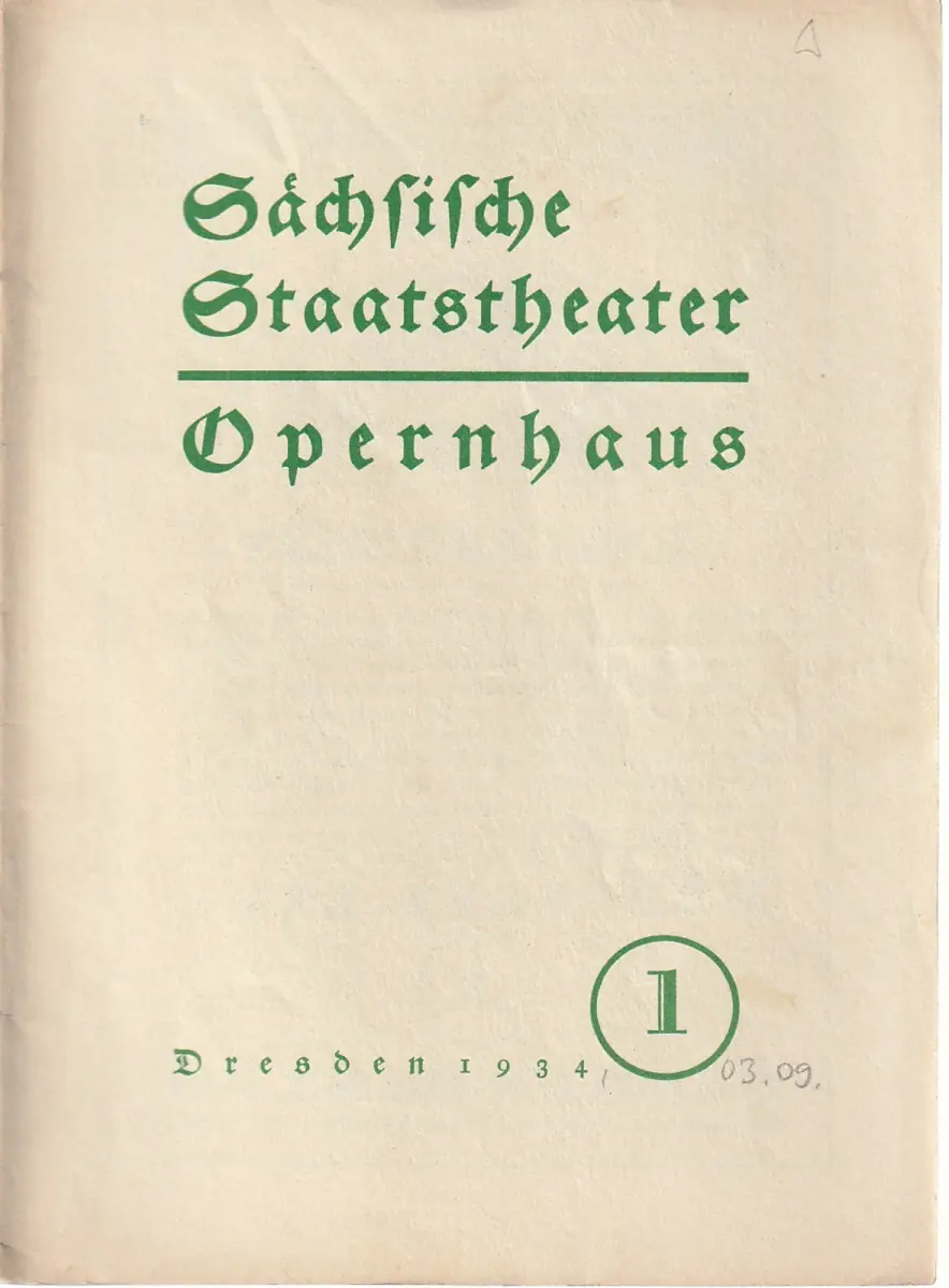 Sächsische Staatstheater Opernhaus Dresden, Gerhard Pietzsch: Programmheft Ermanno Wolf=Ferrari DIE VIER GROBIANE 3. September 1934.