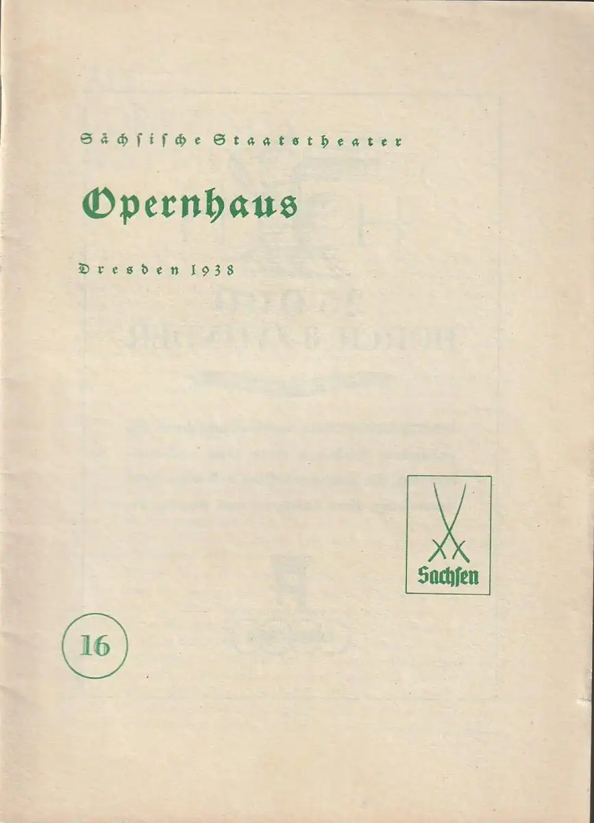 beinhaltet Blätter der Staatsoper Nummer 16 Spielzeit 1937 / 38. Musikalische Leitung: Kurt Striegler. Spielleitung: Ludwig Eybisch. Mitwirkende: Kurt Böhme, Angela Kolniak, Arno Schellenberg, karl Wessely, Ludwig Ermold, Jessyka Koettrik, Hanns Lange, Wilhelm Bungies, Ludwig Roth - Theaterprogramm, Opernprogramm, Ballettprogramm, Musicalprogramm, Konzertprogramm, Theatermemorabilia, Programmhefte Sammlung, deutsche Theatergeschichte.