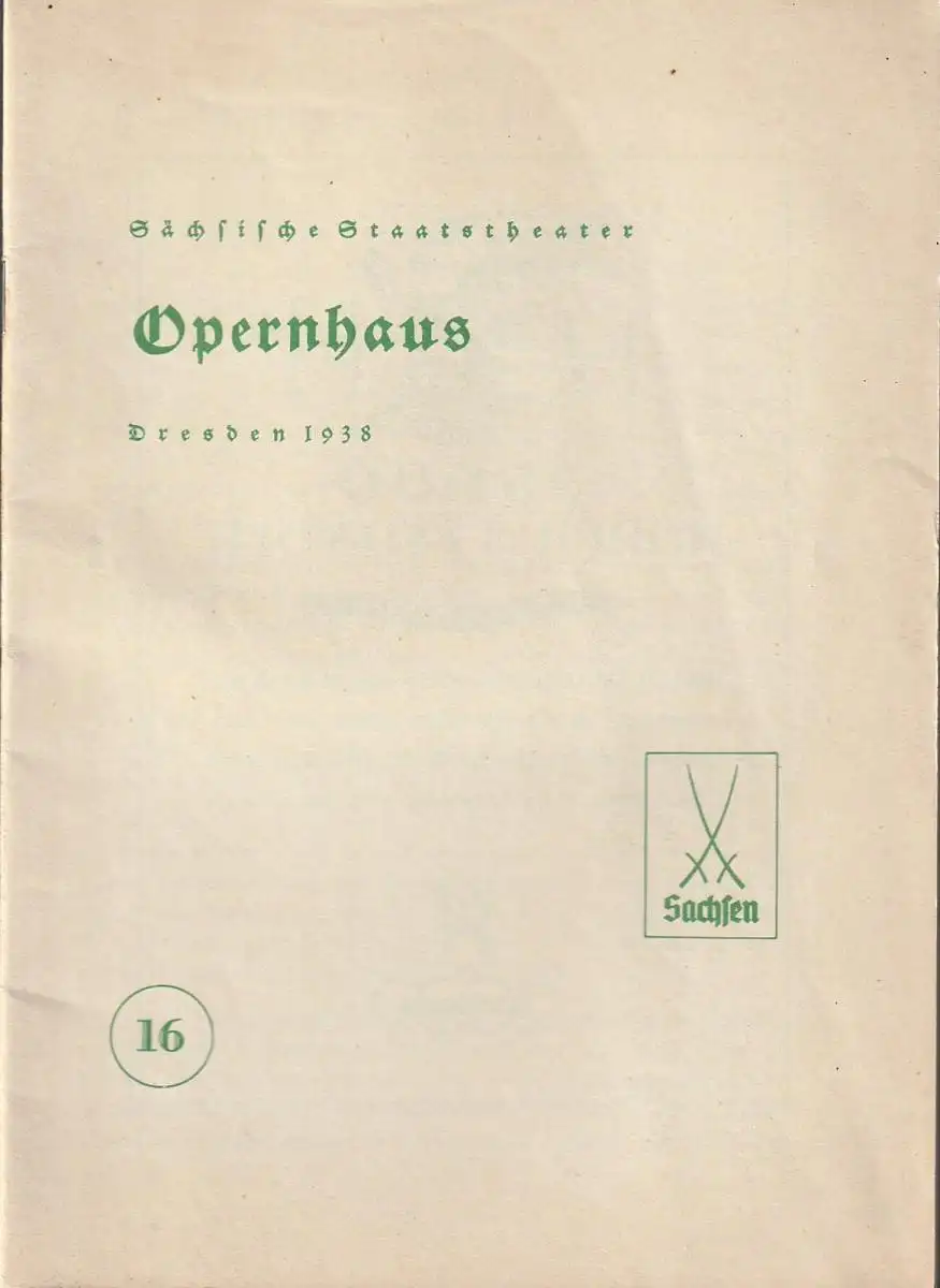beinhaltet Blätter der Staatsoper Nummer 16 Spielzeit 1937 / 38. Musikalische Leitung: Ernst Hintze. Szenische Leitung: Hans Strohbach. Mitwirkende: Irma Roster, Lucia Dölitzsch Jessyka Koettrik, Martin Kremer, Lurdiwg Ermold, Hanns Lange, Ludwig Eybisch, u.a. - Theaterprogramm, Opernprogramm, Ballettprogramm, Musicalprogramm, Konzertprogramm, Theatermemorabilia, Programmhefte Sammlung, deutsche Theatergeschichte.