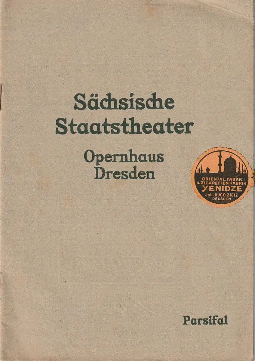 Sächsische Staatstheater Opernhaus Dresden: Programmheft Richard Wagner PARSIFAL 17. April 1922.