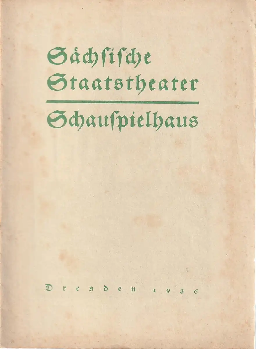 Sächsische Staatstheater Schauspielhaus Dresden: Programmheft Henrik Ibsen PEER GYNT 8. Oktober 1936.