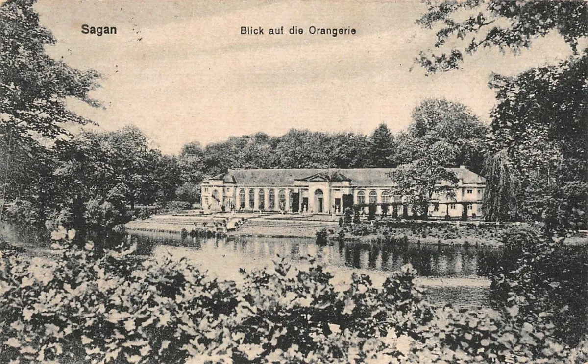 Sagan Blick auf die Orangerie Postkarte 1927
