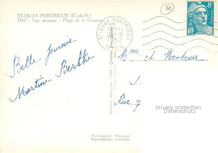 Saint-Quay-Portrieux Plage de la Comtesse vue aérienne Saint-Quay-Portrieux postalisch gelaufen 1952 Erhaltung siehe scans [FriedD77] Frierer