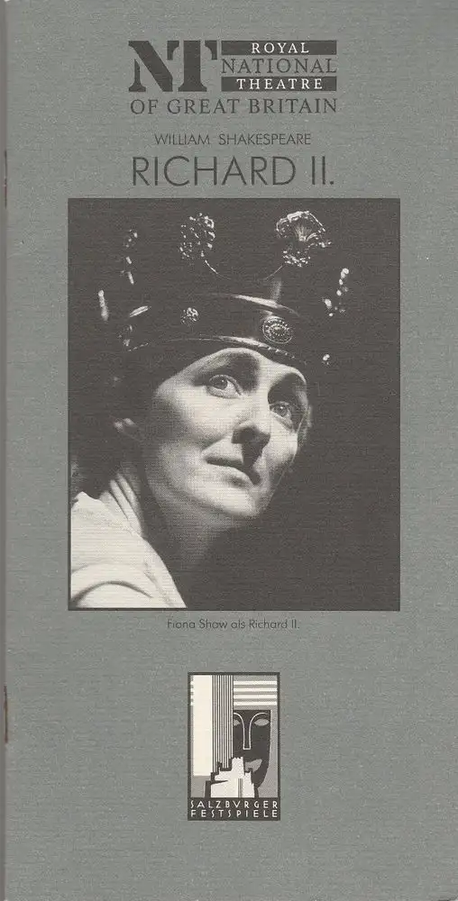 Aufführung des Royal National Theatre of Great Britain ( NT ) im Rahmen der Salzburger Festspiele vom 20.7. bis 31.8. 1996. Regie: Deborah Warner. Bühne und Kostüme: Hildegard Bechtler. Musik: Arturo Annecchino, Musikalische Leitung: Rebecca Arch. Mitwirkende: Fiona Shaw, Graham Crowden, Richard Bremmer, David Lyon, Paola Dionisotti, u. a. - Theaterprogramm, Opernprogramm, Ballettprogramm, Musicalprogramm, Konzertprogramm, Theatermemorabilia, Programmhefte Sammlung, deutsche Theatergeschichte.