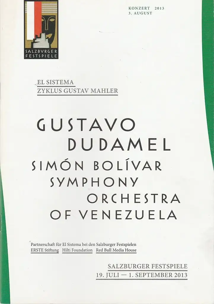 Titel: Programmheft GUSTAVO DUDAMEL SIMON BOLIVAR SYMPHONY ORCHESTRA OF VENEZUELA 3. August 2013 Grosses Festspielhaus Salzburger Festspiele 19. Juli - 1. September 2013