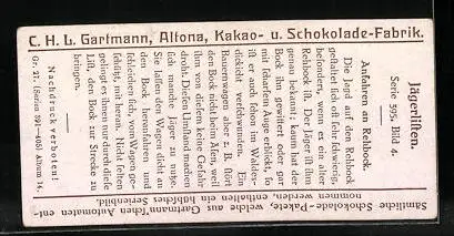 Sammelbild Gartmann`s Chocolade, Jägerlisten, Anfahren an Rehbock