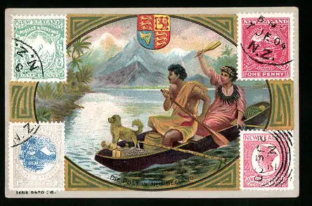 Sammelbild Krefelder Margarine-Werke Jan C. Uhlenbroek, Die Post in Neu Seeland