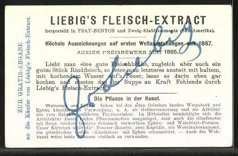 Sammelbild Liebig, Die Pflanze in der Kunst, Der Weinstock und Efeu