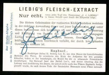 Sammelbild Liebig, Raphael, Papst Leo X. und Modell der Peterskirche