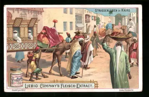 Sammelbild Liebig, Strassenleben in Kairo, Kamelreiter mit Waren