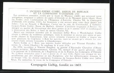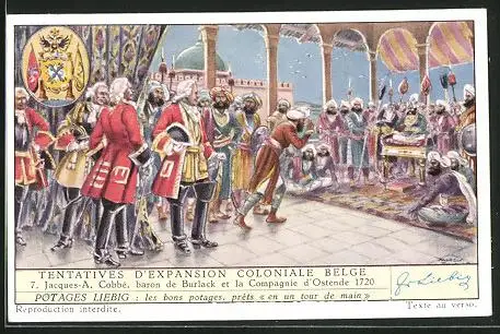 Sammelbild Liebig, Tentatives D`Expeansion Coloniale Belge, Jacques-A. Cobbé, baron de Burlack et la Compagnie