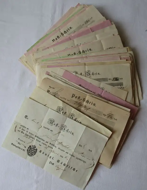 Sammlung aus mehr als 100 Einzahlungs- und Post-Scheine meist königlich sächsische Post vor 1871