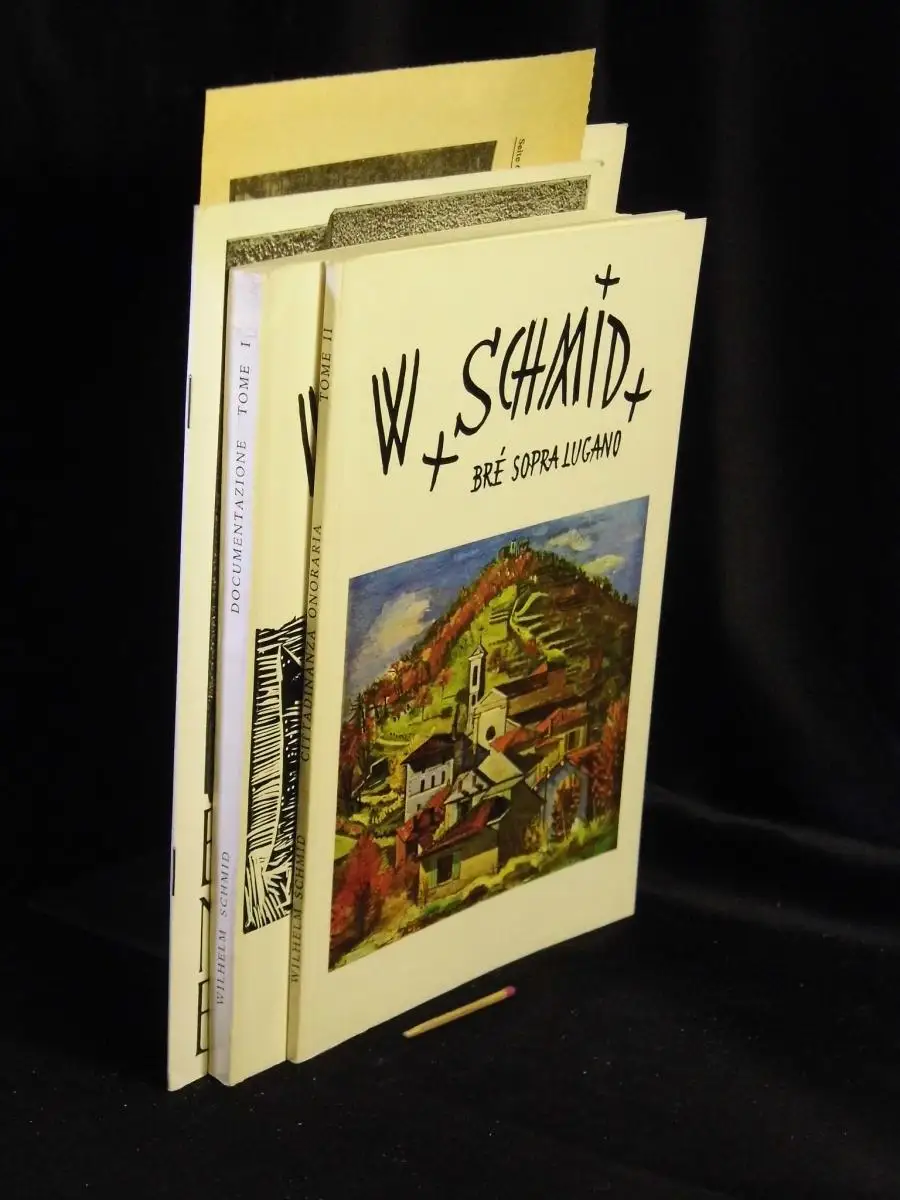 Wilhelm Schmid. Separatdruck aus „Künstlerlexikon der Schweiz XX. Jahrhundert“ + Wilhelm Schmid. Artista pittore. Cittadinanza onoraria. 23. Novembre 1968 + Brugger Neujahrsblätter. 1969, S. 69-75 - alles mit Abbildungen sowie Widmung für Fr. Dr. Kliemann und Autograf von W. Schmid - leicht berieben und bestoßen mit kleinen Randläsuren, - intern544-2547 - Broschüren, Heft.