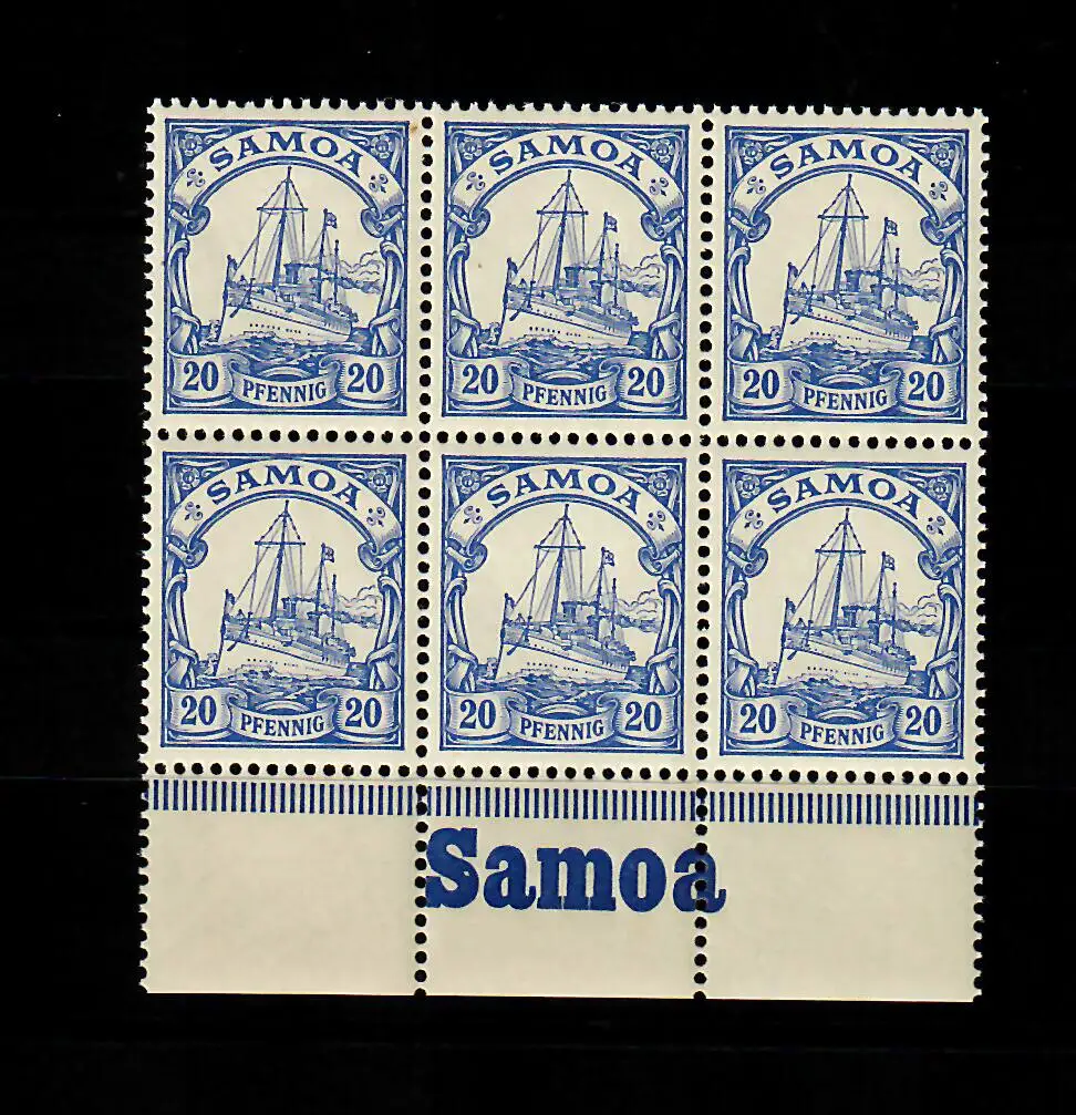 Samoa: MiNr. 10, 6er Block vom Unterrand mit Inschrift, postfrisch, **