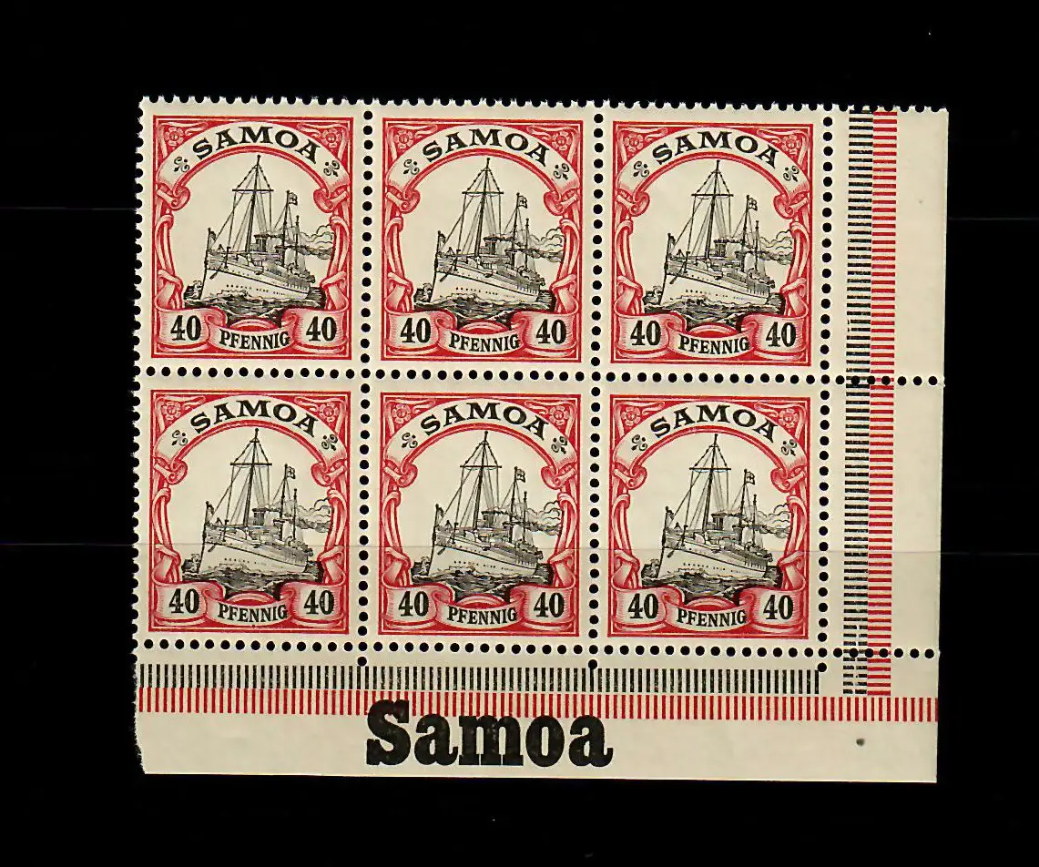 Samoa: MiNr. 13, 6er Block vom Eckrand rechts mit Inschrift, postfrisch, **