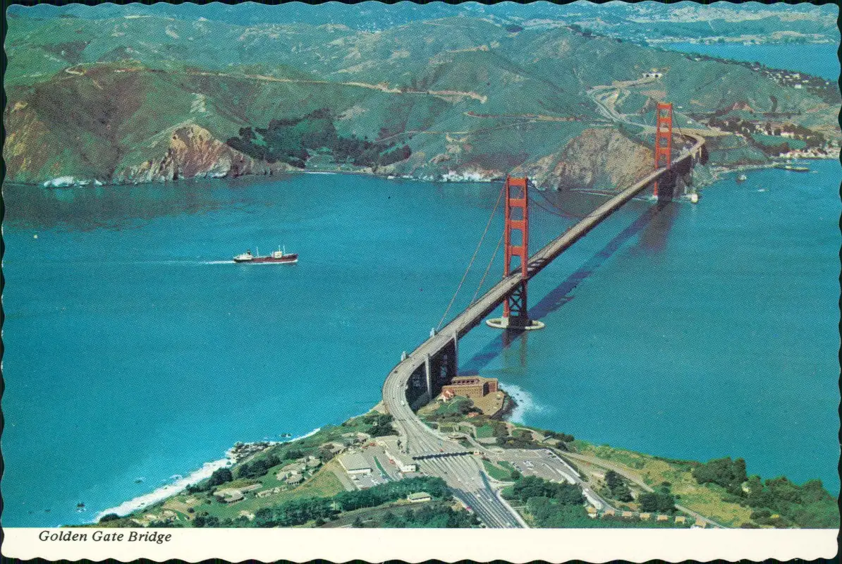 San Francisco Golden Gate Bridge Aerial View, Luftaufnahme Brücke 1970