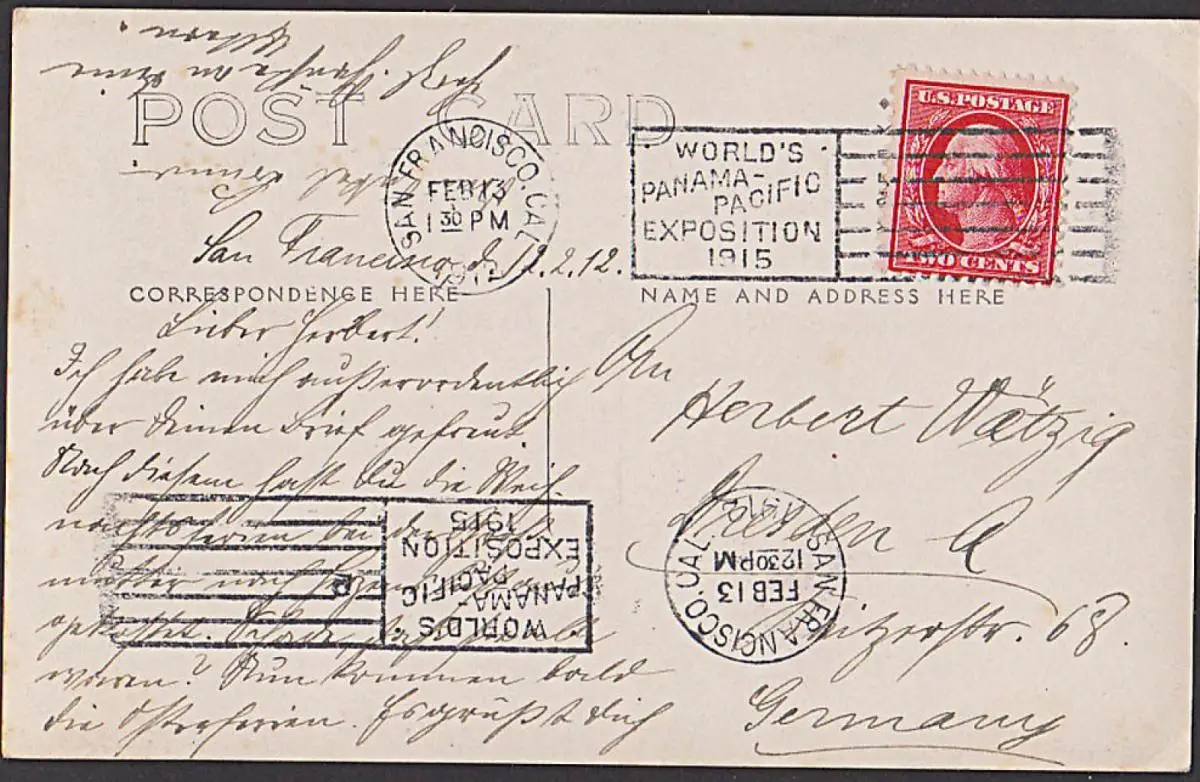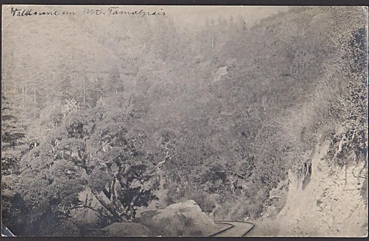 San Franzisco 1912 Photo Eisenbahnschienen in Waldstück bzw. in Kurve MWSt. World`s Panama-Pacific Exposition 1915"