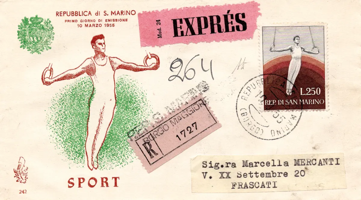 Umschlag - San Marino - Turnerin Lire 250 Nr. 419 auf Umschlag Racc. exp. für Frascati mit Ann. bei Ankunft - Selten - AD Cod. 627/17