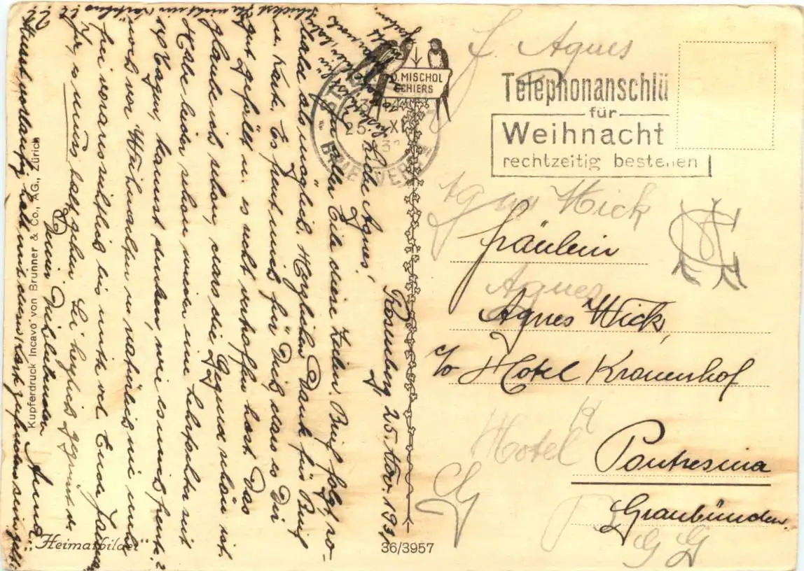 Danke. Alles Bestens. Können Sie mir allenfalls mitteilen, aus welchem Jahr die Postkarte stammt? Besten Dank.