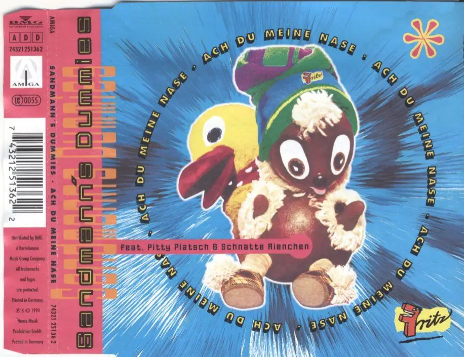 CD Single Sandmann's Dummies - Ach Du Meine Nase, feat. Pitty Platsch & Schnatte Rienchen, Zustand CD VG+ Hülle VG; Made in Germany 1994 Amiga 74321 25136 2, Tracks Radio-Edit 3:41, Trance-Mix 5:45, Lach-Mix 3:04, Hard-Mix 3:07