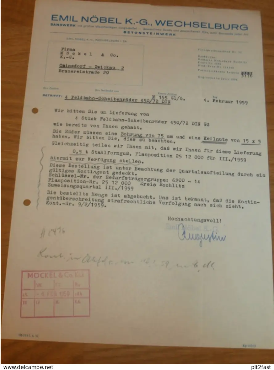 Sandwerk - Emil Nöbel KG in Wechselburg , 1959 , Herr Augustin , altes Dokument , Reklame / Werbung !!