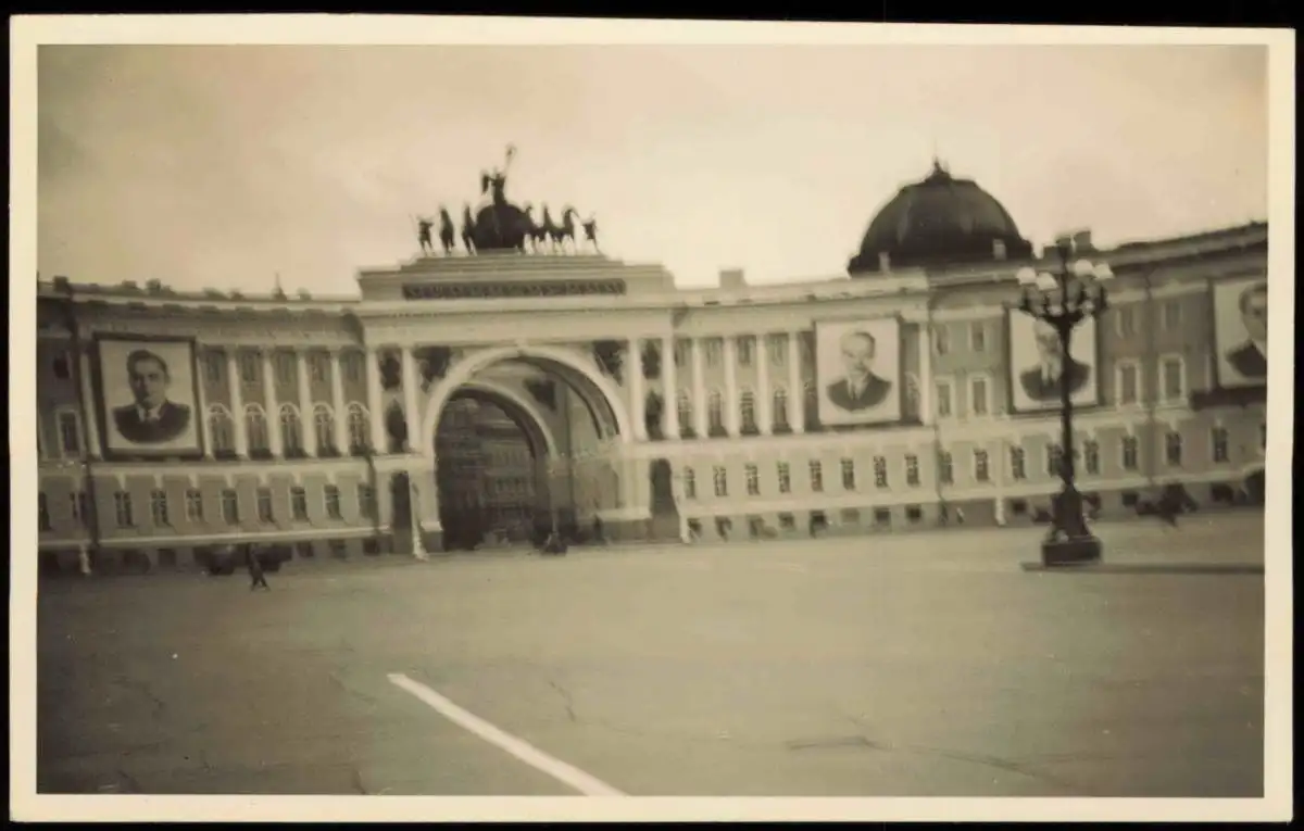 Sankt Petersburg Санкт-Петербург Narva Triumphbogen Propaganda Porträts 1960