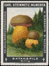 Kolonialwarenversandhaus, Goethestraße 19, Blumenstraße 4, Pilz, Druck: Jos. C. Huber, Diessen, Größe/Zustand: 7x5 , guter Zustand, Original alte Reklamemarke die seinerzeit für die Werbung benutzt wurde
