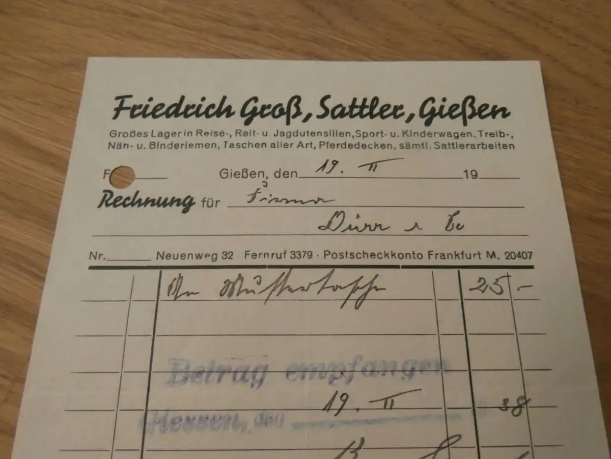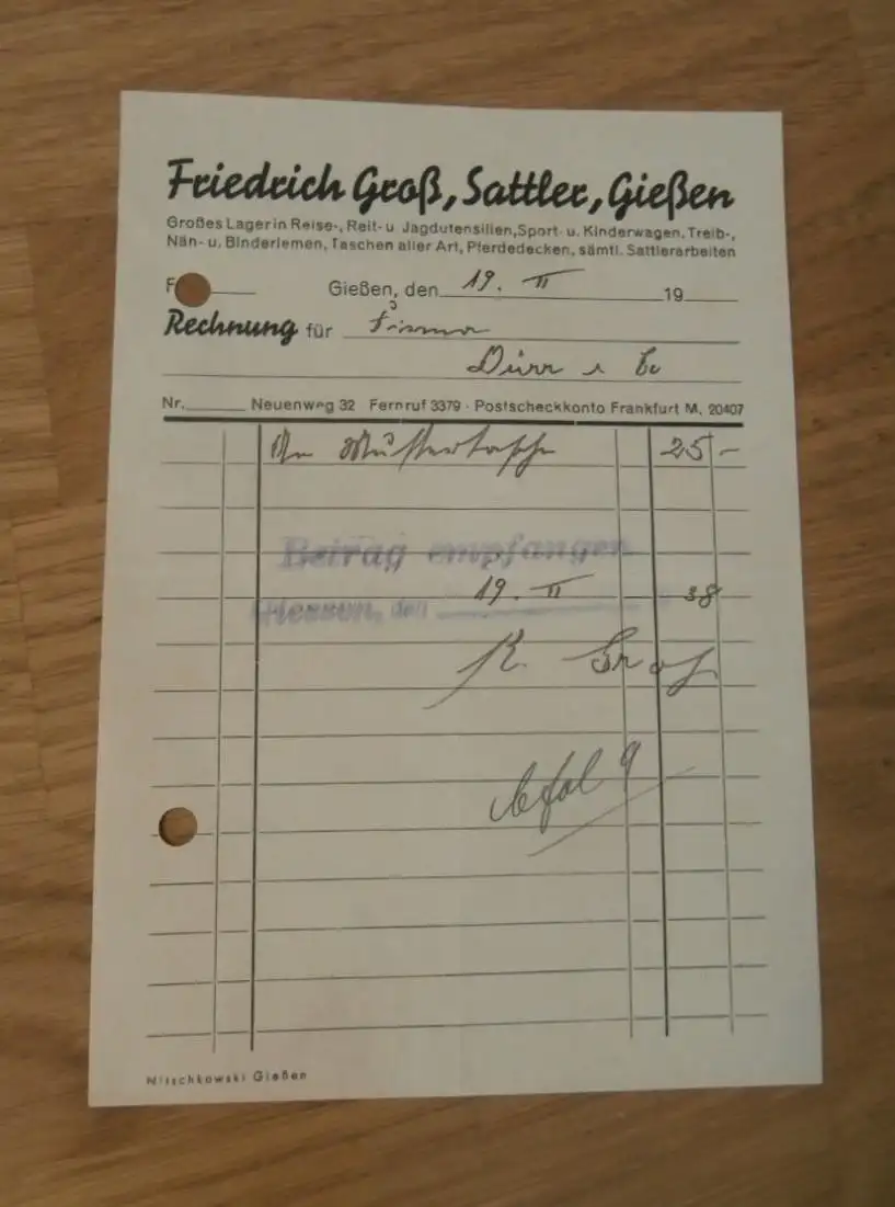 Sattler - Friedrich Groß in Gießen , 1938 , altes Dokument / Rechnung , Reklame / Werbung , Giessen