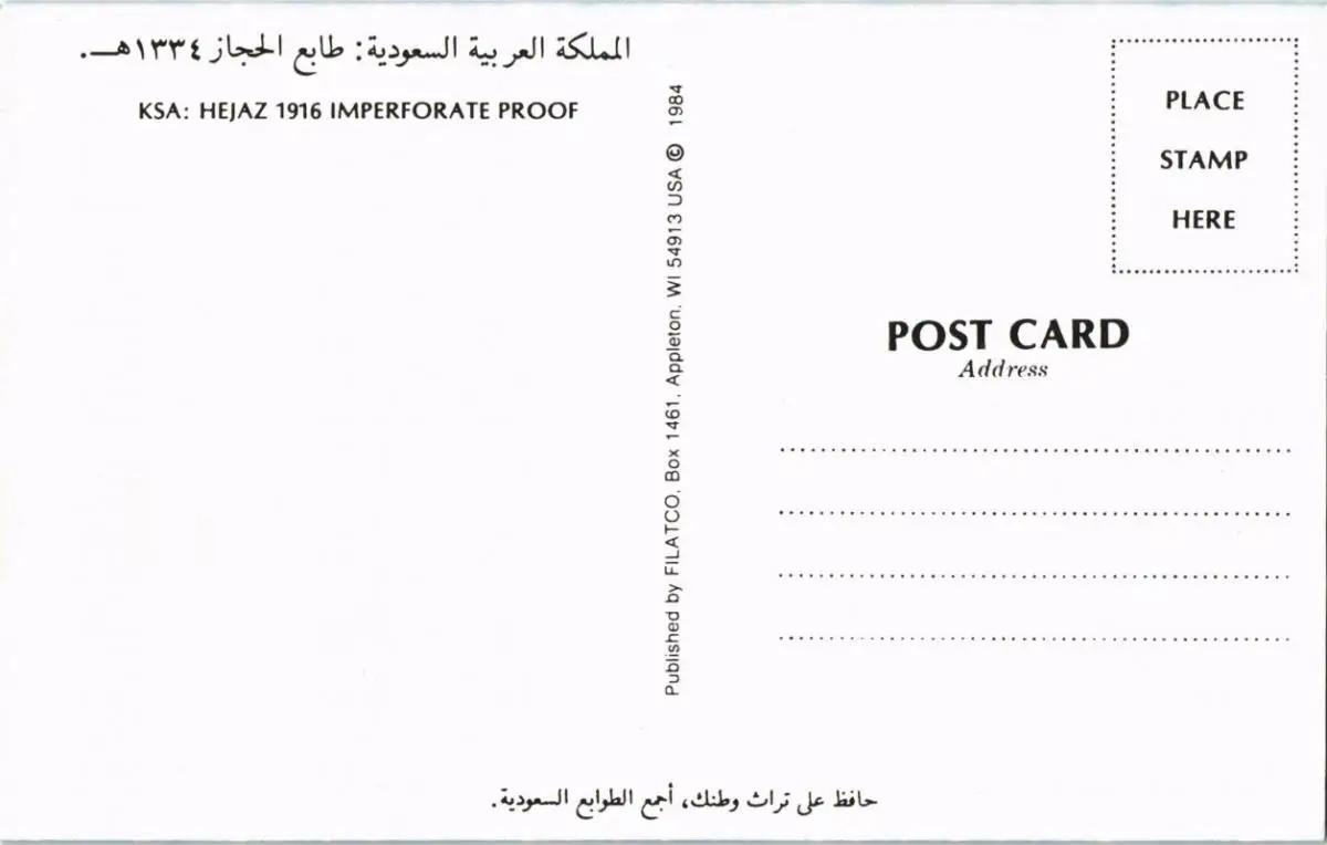 Saudi Arabien السعودية طابع الحجاز ۱۳۳۹/KSA: HEJAZ 1916 IMPERFORATE PROOF 1984