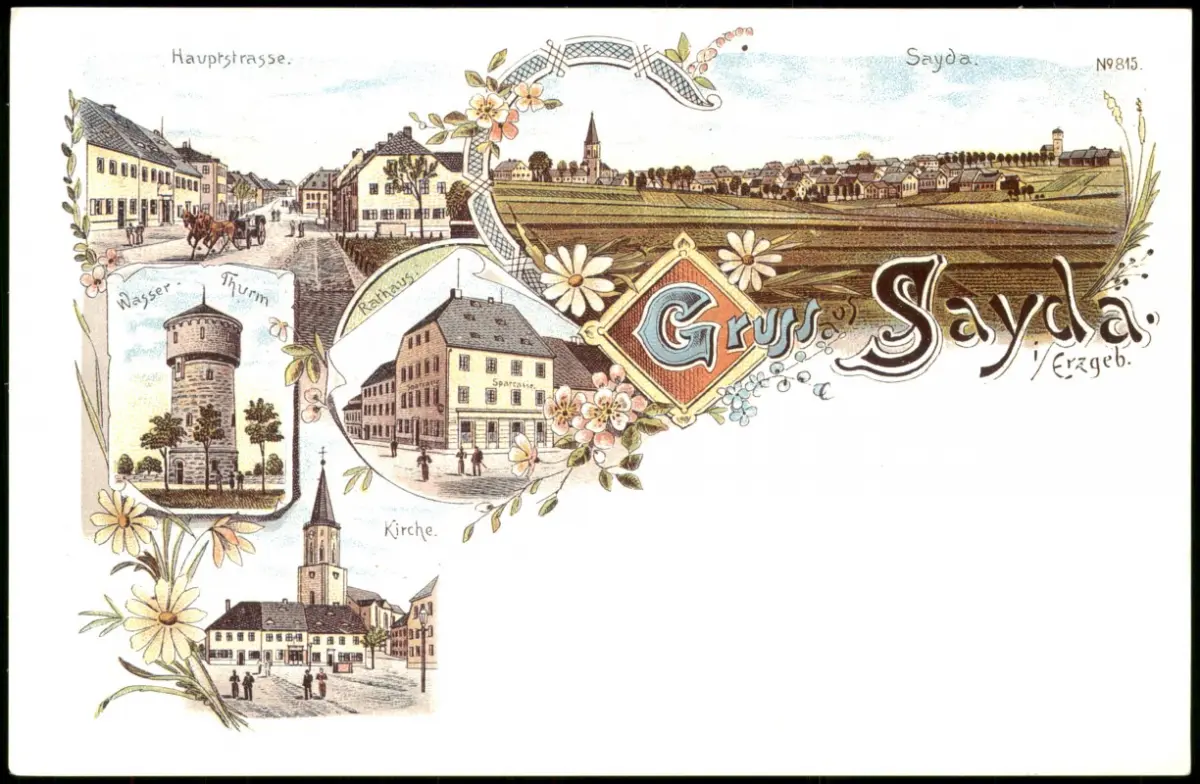 Sayda Repro-Ansicht alter Litho (anno 1900) Ortsansichten Erzgebirge 2000