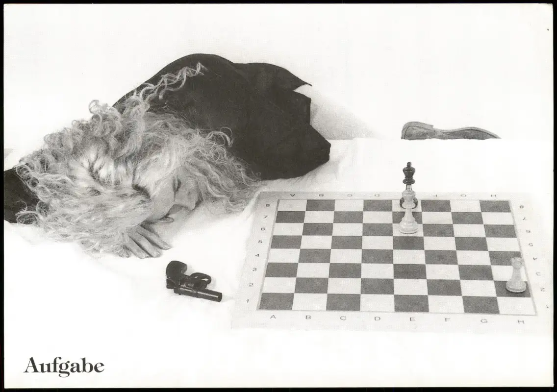 Schach Chess Limitierte Motivkarte "Aufgabe" Frau vor Schachbrett 1990