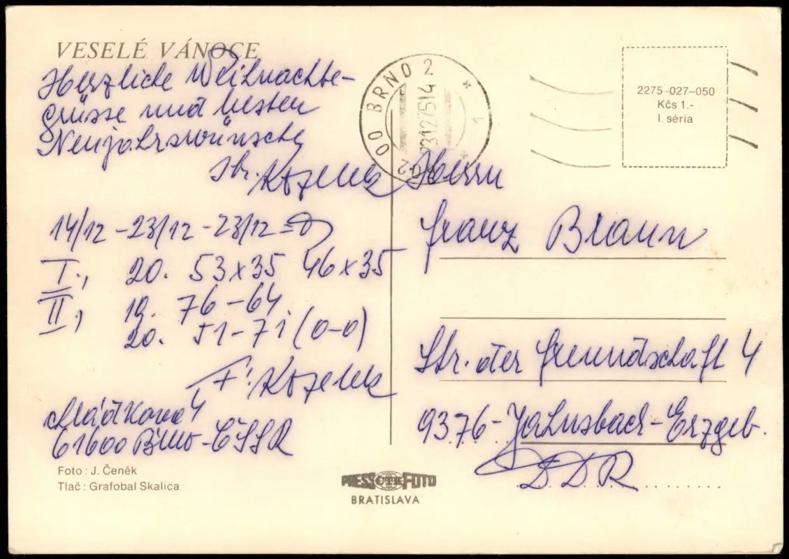 Schach Chess Motivkarte Spielbrett mit Kerze u. Tannenzweigen 1975