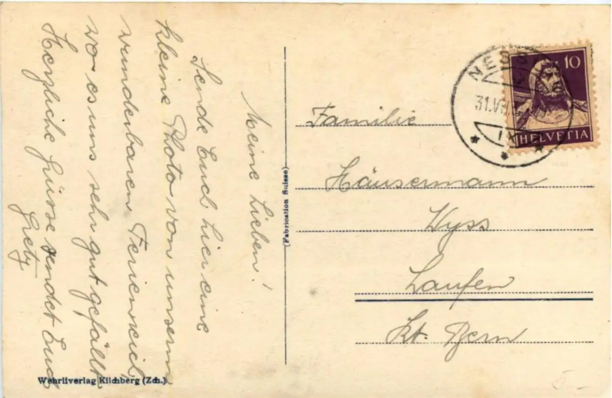 Danke. Alles Bestens. Können Sie mir allenfalls mitteilen, aus welchem Jahr die Postkarte stammt? Besten Dank.