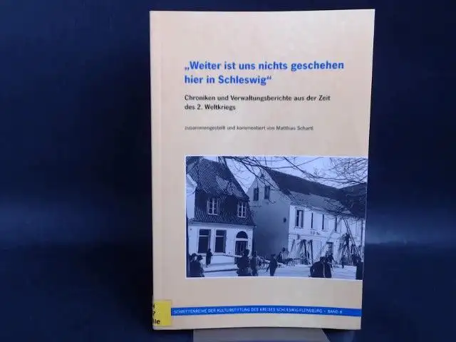 Weiter ist uns nichts geschehen hier in Schleswig. Chroniken und Verwaltungsberichte aus der Zeit des 2. Weltkriegs. Zusammengestellt und kommentiert von Matthias Schartl. Herausgegeben von der Kulturstiftung des Kreises Schleswig-Flensburg [Schriftenreihe der Kulturstiftung des Kreises Schleswig-Flensburg, Band 8]. Ehemaliges Bibliotheksexemplar mit entsprechender Ausstattung. Einband foliert, mit kleiner Knickspur. Sonst guter Gesamtzustand