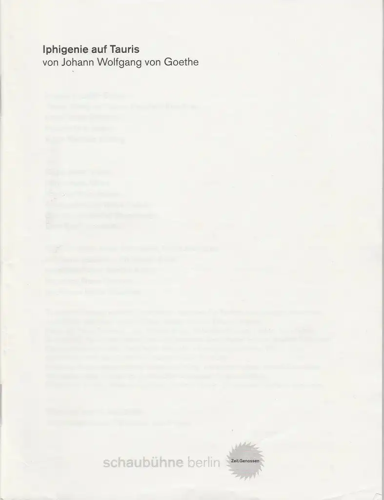 Schaubühne Berlin, Schaubühne am Lehniner Platz, Heinrich Kreyenberg, Arno Declair (Fotos): Programmheft Johann Wolfgang von Goethe IPHIGENIE AUF TAURIS Premiere 14. Mai 2009 Spielzeit 2008 / 2009.