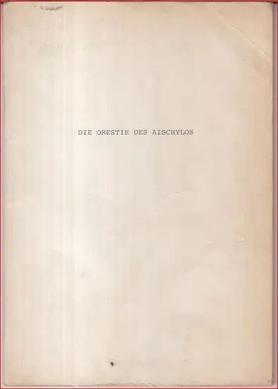 Titel: Textbuch mit Besetzungsliste zu: Die Orestie des Aischylos (458 v. Chr. uraufgeführt), in Prosa-Übersetzung nacherzählt. - Antikenprojekt II. - Regie: Peter Stein. - Darsteller: Gerd Wameling, Edith Clever, Peter Fitz, Udo Samel, Peter Simonischek, Christine Oesterlein, Jutta Lampe u. a.