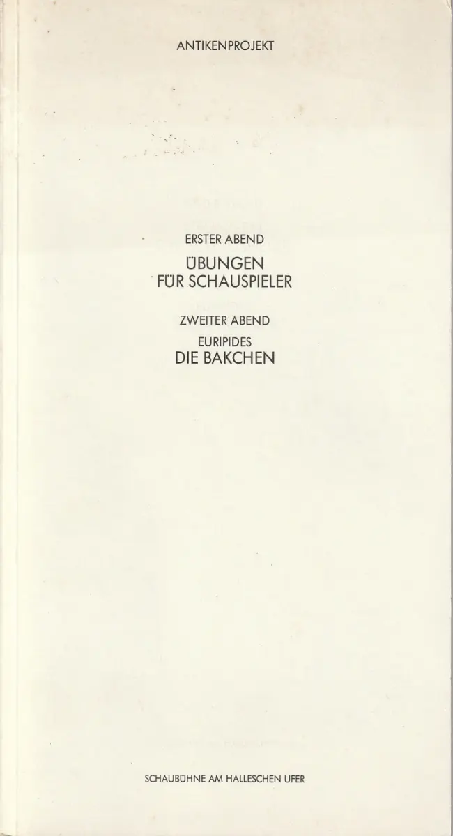 Schaubühne am Halleschen Ufer, Dieter Sturm: Programmheft ANTIKENPROJEKT Erster Abend ÜBUNGEN FÜR SCHAUSPIELER Zweiter Abend Euripides DIE BAKCHEN 1974.